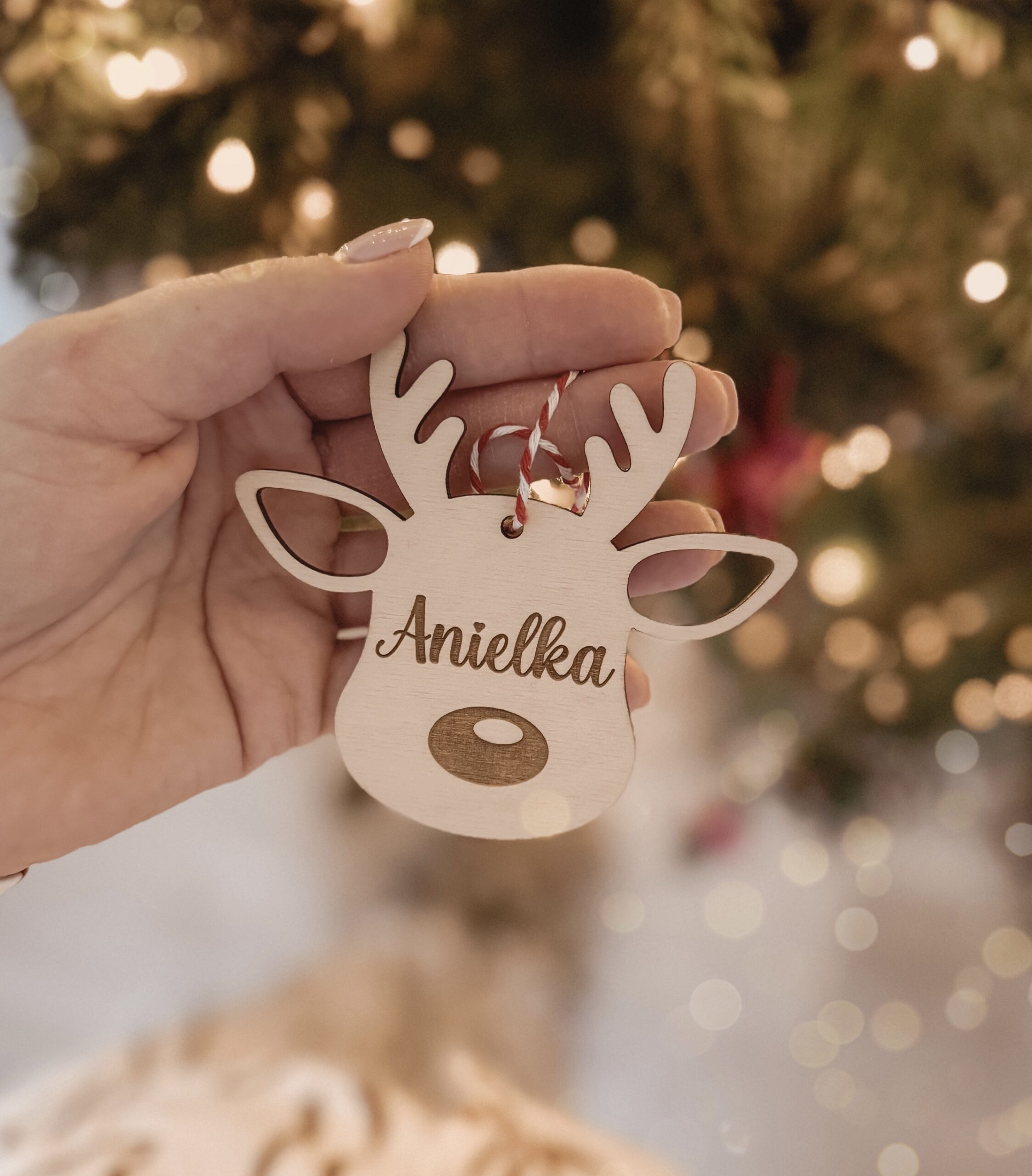 🎄 Drewniana Bombka imienna Renifer