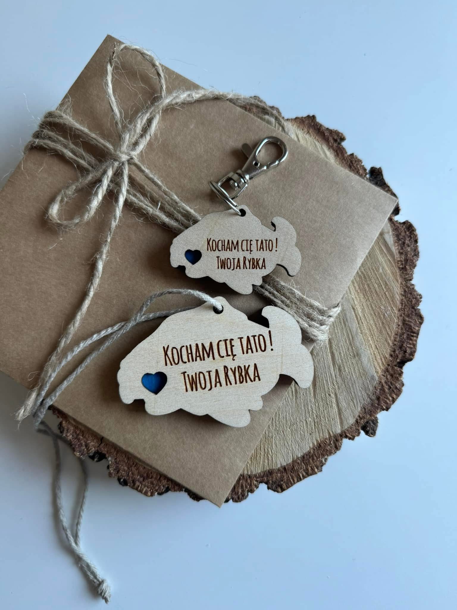 🎁 Gotowe do wręczenia – Zestaw brelok i zawieszka spakowany, gotowy do wręczenia w kopertę przewiązaną sznurkiem z juty.