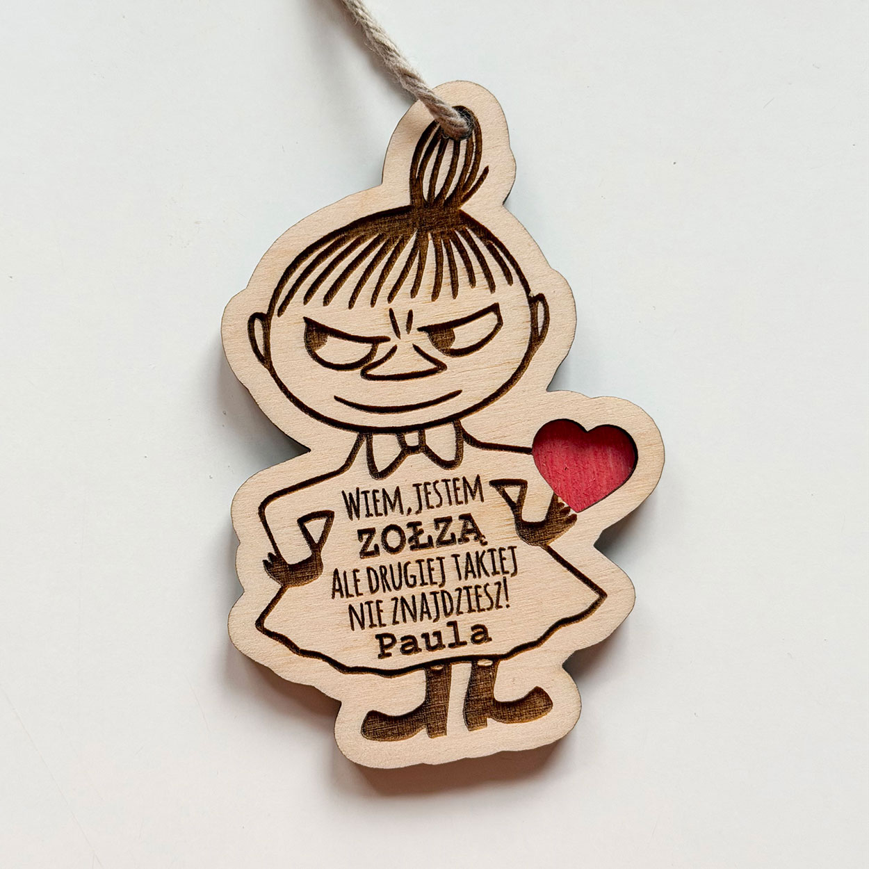 Zawieszka Zołza w kształcie małej Mi📏 Wymiary: 6,7cm x 10 cm📏 Grubość: 9 mm✅ Personalizacja: W polu personalizacji proszę wpisać tylko imię!